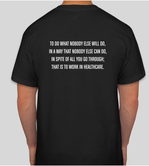 This shirt is dedicated to all of the healthcare members working the frontlines and putting their life on the line to help serve others. Being a healthcare worker shows true compassion, true empathy and is the definition of putting yourself in front of others. Thank you to all of the certified nurse assistants, medical assistants, phlebotomists, nurses, respiratory therapists, social workers, physical therapists, occupations therapist, speech-language pathologist, EKG technicians, patient care technicians, doctors, housekeeping, dietary, activities and every single person on the healthcare team. We are grateful for you!
